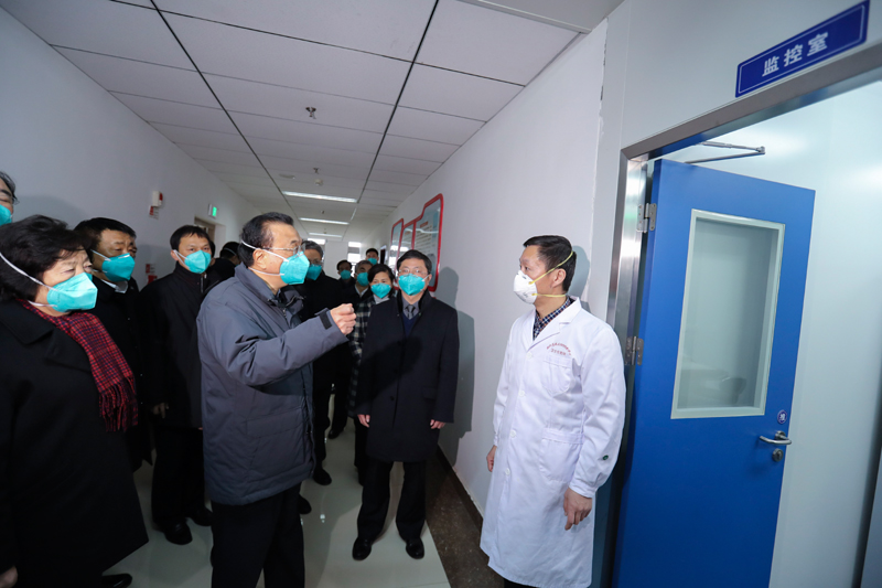 1月27日,受习近平总书记委托,中共中央政治局常委、国务院总理、中央应对新型冠状病毒感染肺炎疫情工作领导小组组长李克强赴武汉考察指导疫情防控工作,代表党中央、国务院慰问疫情防控一线的医务人员。他强调,各地各部门要深入贯彻中央政治局常委会会议精神,全面落实党中央、国务院决策部署,把人民群众生命安全和身体健康放在第一位,同舟共济、齐心协力做好疫情防控工作。