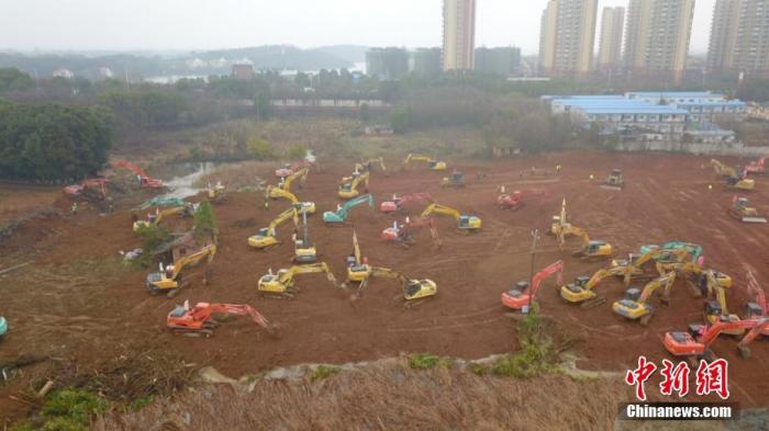 1月24日上午,武汉版小汤山模式医院开建。现场上百台机械同时开挖。中新社记者 郑子颜 摄