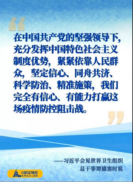 正如谭德塞所言,对于此次疫情防控,习近平主席亲自指挥、亲自部署,展现出卓越的领导力。不仅“史无前例”地在农历新年第一天主持召开中共中央政治局常务委员会会议,还多次作出重要指示批示。