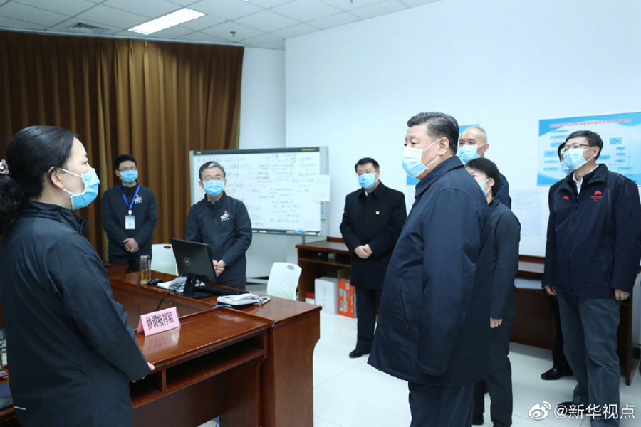 10日下午,习近平来到北京地坛医院,察看新冠肺炎感染者住院诊疗情况,视频连线武汉市重症患者收治医院,听取中央指导组、湖北指挥部有关情况汇报,慰问奋战在一线的医务工作者。随后,习近平前往朝阳区疾病预防控制中心,了解朝阳区开展应急处置、流行病学调查、筛查报告和北京市疫情防控工作情况。(文字记者张晓松 摄影记者鞠鹏、谢环驰、刘彬)