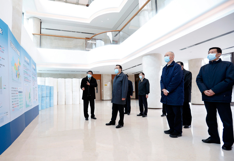 2月21日,中共中央政治局常委、国务院总理、中央应对新冠肺炎疫情工作领导小组组长李克强在中共中央政治局委员、北京市委书记蔡奇和市长陈吉宁陪同下,到北京海淀考察医疗防控物资生产供应保障情况。他强调,要在以习近平同志为核心的党中央坚强领导下,按照党中央、国务院决策部署,统筹疫情防控和经济社会发展,促进大中小企业合作协同,进一步扩大医疗防控防疫物资产量,有力保障疫情防控、有序复工复产的需要。