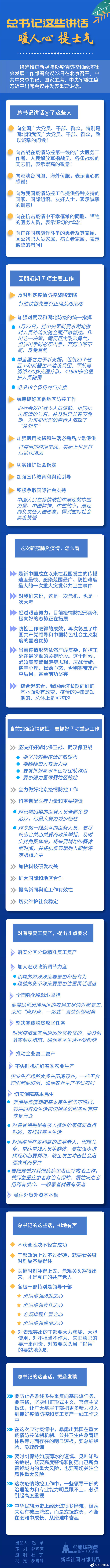 统筹推进新冠肺炎疫情防控和经济社会发展工作部署会议23日在北京召开。中共中央总书记、国家主席、中央军委主席习近平出席会议并发表重要讲话。一图速览这些暖人心、提士气的话。