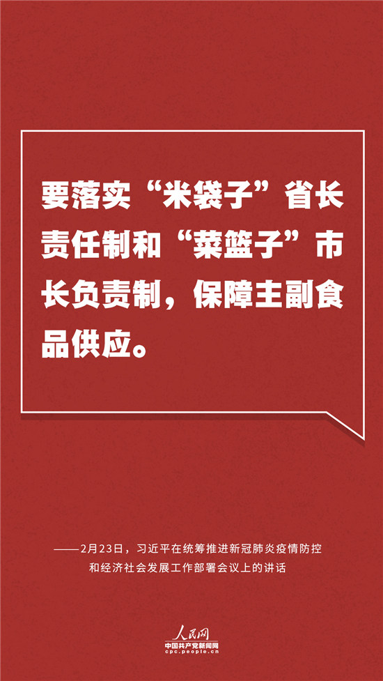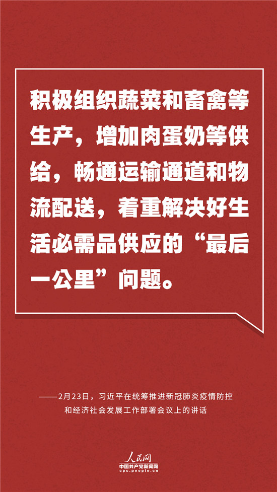 当晚,新华社发布了习近平在这次重要会议上的讲话全文。万余字的讲话中,习近平总书记针对“食品供应”“物价”“就业”“农业生产”“医疗救治”等民生话题都给出详细的“真招”“实招”,人民网·中国共产党新闻网为您梳理。(点击查看全文)