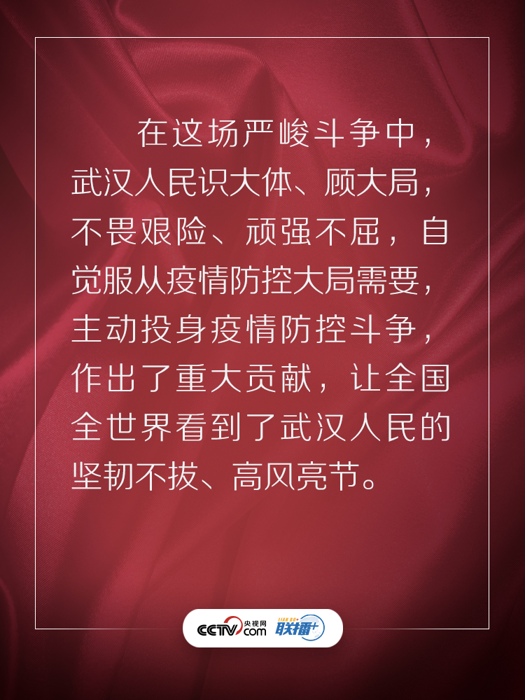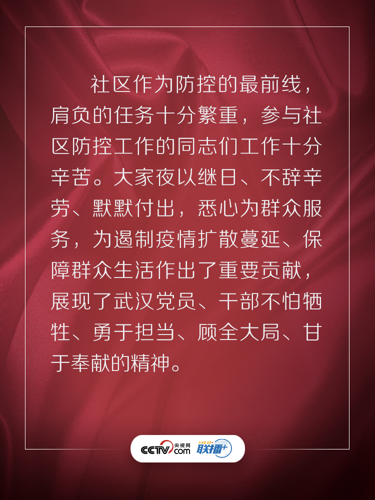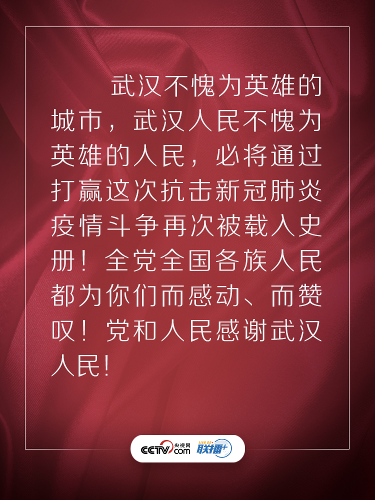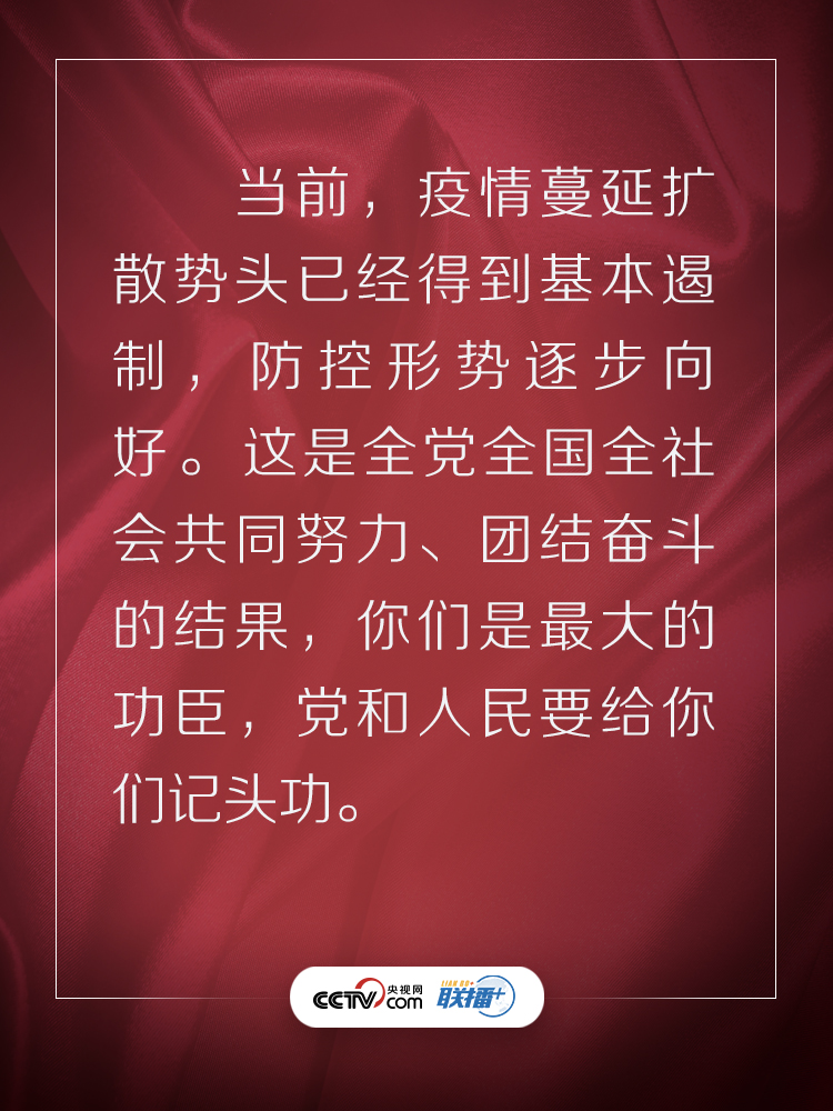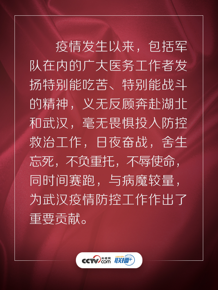 联播+3月10日,在抗击新冠肺炎疫情的关键时刻,习近平总书记专门赴湖北省武汉市考察疫情防控工作。他强调,湖北和武汉是这次疫情防控斗争的重中之重和决胜之地。在这场严峻斗争中,湖北各级党组织和广大党员、干部冲锋在前、英勇奋战,全省医务工作者和援鄂医疗队员白衣执甲、逆行出征,人民解放军指战员闻令即动、勇挑重担,广大社区工作者、公安干警、基层干部、下沉干部、志愿者不惧风雨、坚守一线,广大群众众志成城、踊跃参与,涌现出一大批可歌可泣的先进典型和感人事迹。