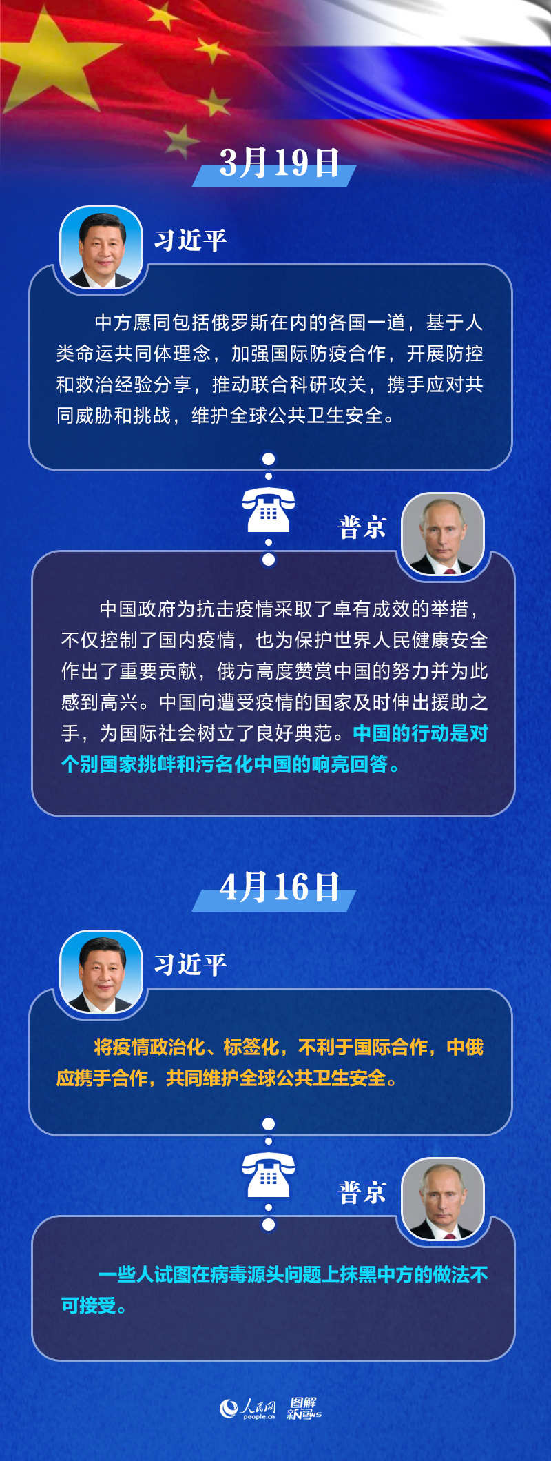 疫情暴发以来,中俄两国团结互助,树立了国际合作的典范。在两次通话中,习近平和普京就疫情防控及其他领域的合作进行了多番交流。