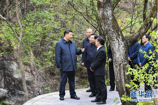 4月20日,习近平在位于秦岭山脉东段的牛背梁国家级自然保护区羚牛谷,了解秦岭生态环境保护情况。 新华社记者 谢环驰 摄