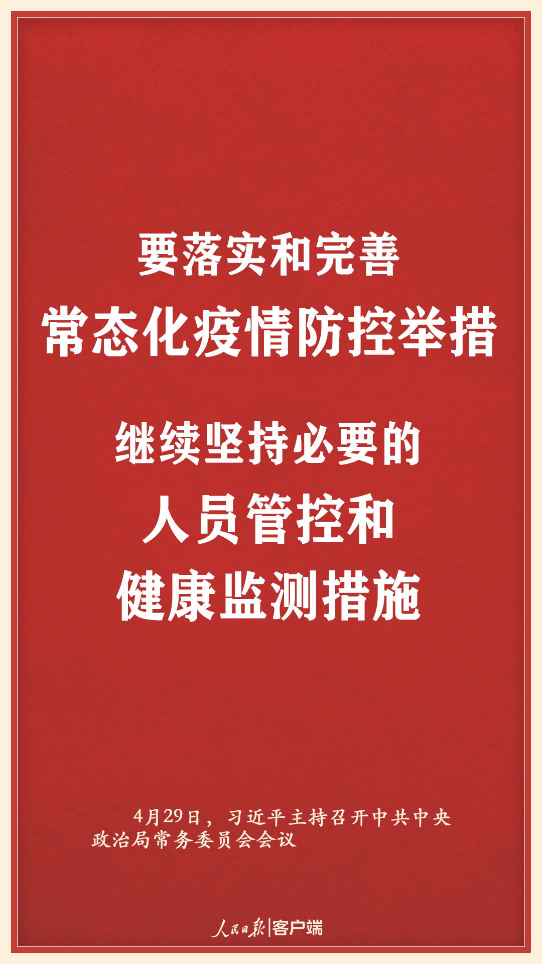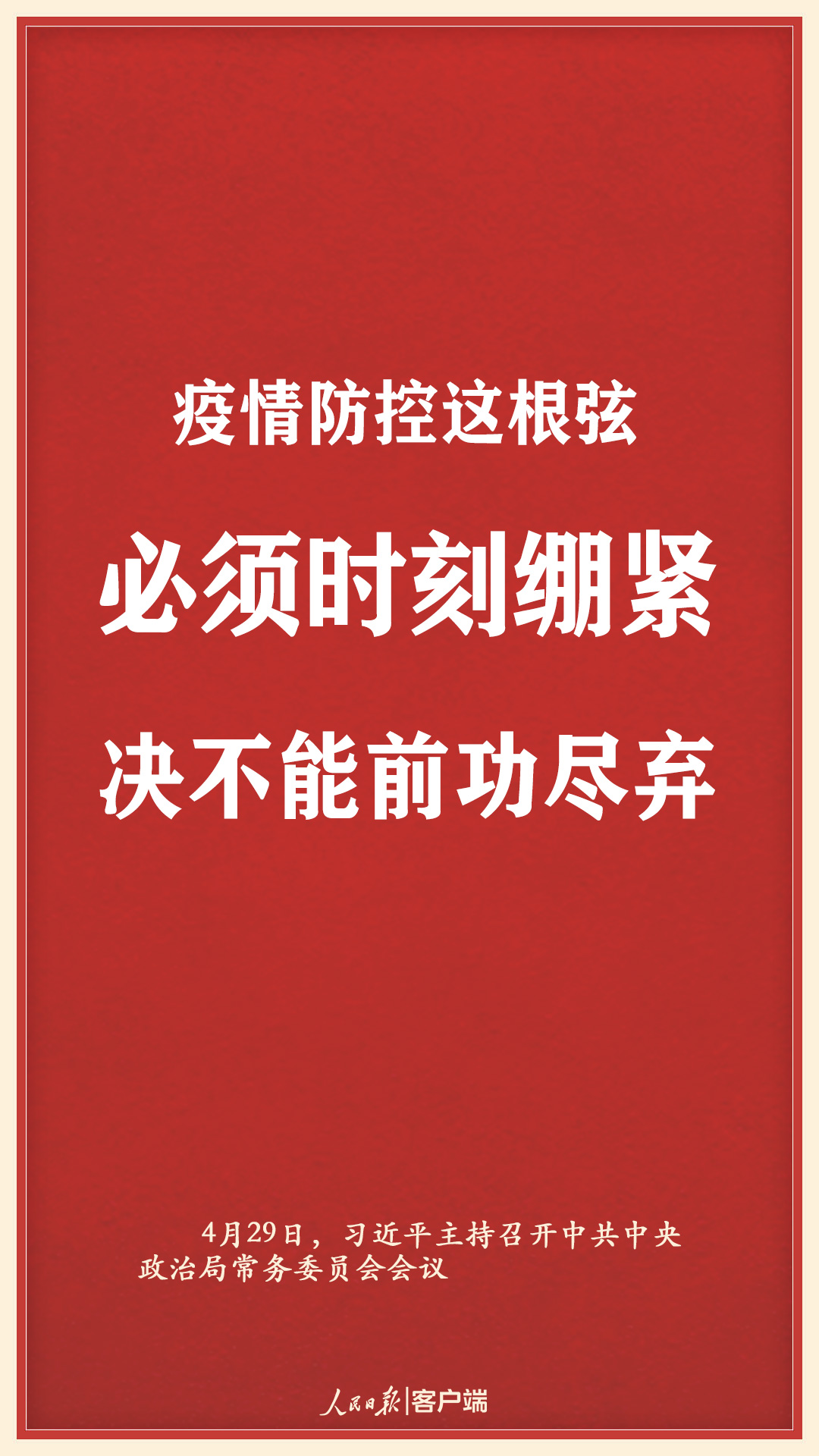 4月29日,中共中央政治局常务委员会再次召开会议,习近平主持并发表重要讲话。