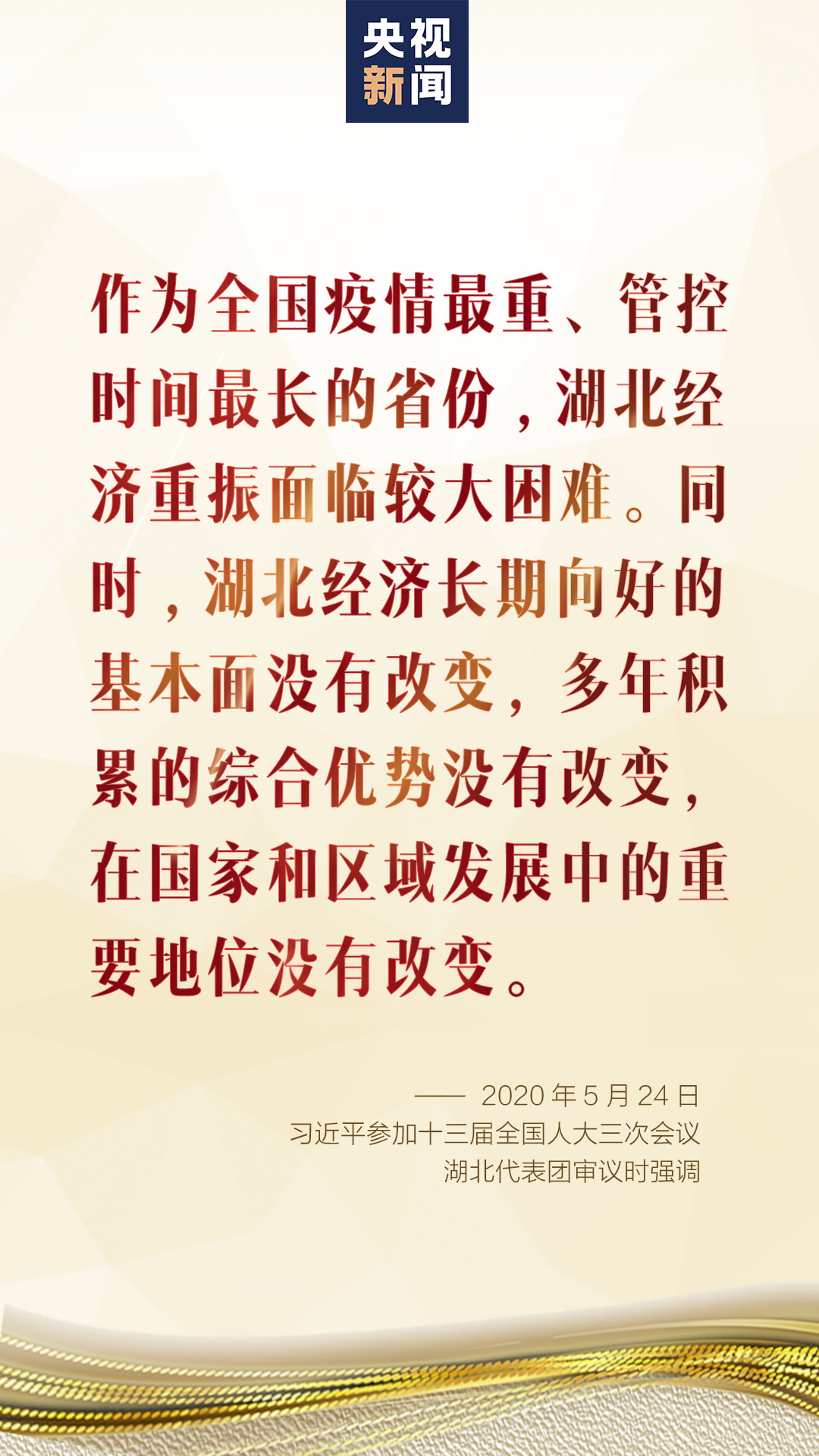 作为全国疫情最重、管控时间最长的省份,湖北经济重振面临较大困难。同时,湖北经济长期向好的基本面没有改变,多年积累的综合优势没有改变,在国家和区域发展中的重要地位没有改变。
