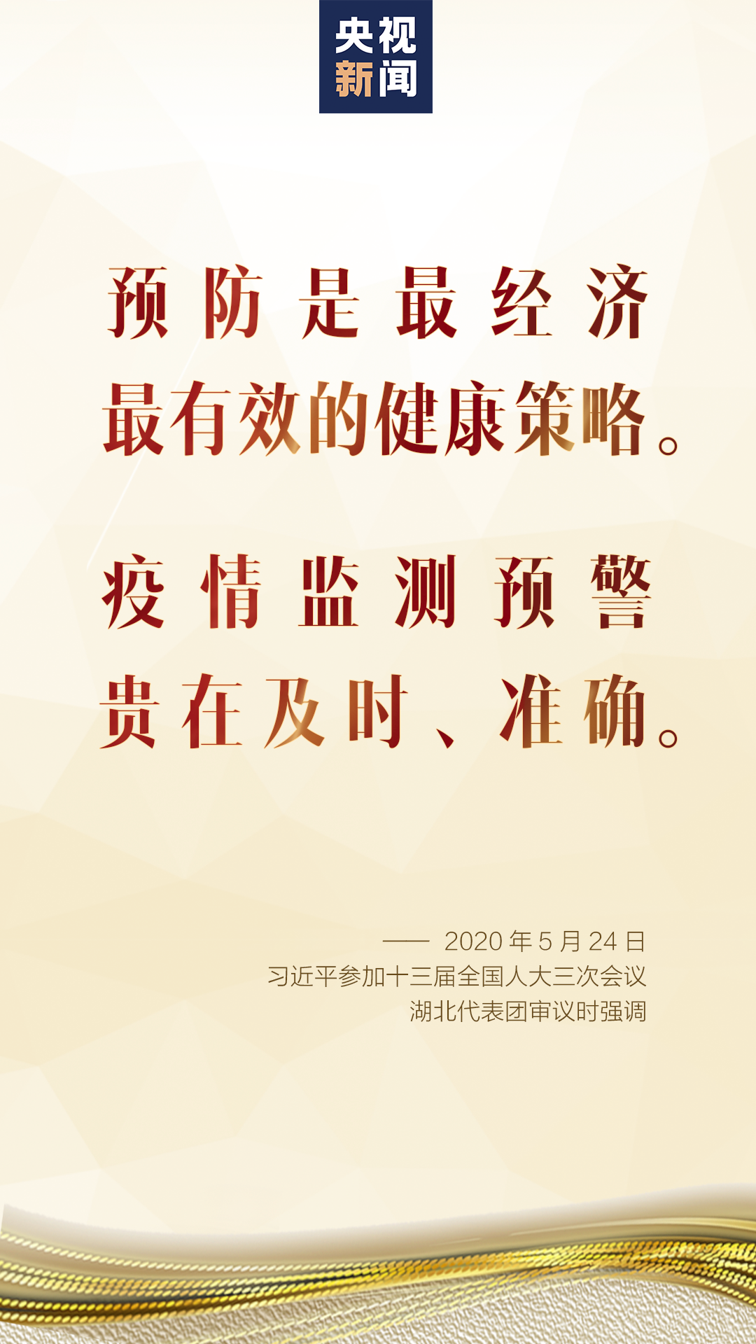 习近平24日下午在参加十三届全国人大三次会议湖北代表团审议时强调,防范化解重大疫情和突发公共卫生风险,事关国家安全和发展,事关社会政治大局稳定。