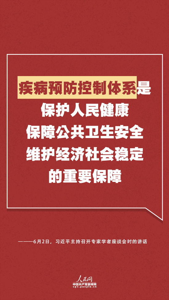 习近平指出,疾病预防控制体系是保护人民健康、保障公共卫生安全、维护经济社会稳定的重要保障。对此,总书记提出八个“要”: