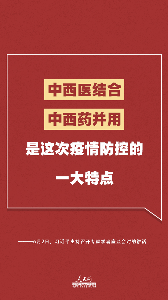 在座谈会上,习近平指出,中西医结合、中西药并用,是这次疫情防控的一大特点,也是中医药传承精华、守正创新的生动实践。要加强古典医籍精华的梳理和挖掘,建设一批科研支撑平台。要加强中医药服务体系建设,提高中医院应急和救治能力。要强化中医药特色人才建设,打造一支高水平的国家中医疫病防治队伍。要推动中西医药相互补充、协调发展。