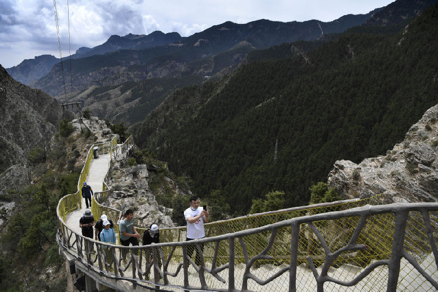 市民在贺兰山国家森林公园(新华社记者冯开华 摄)