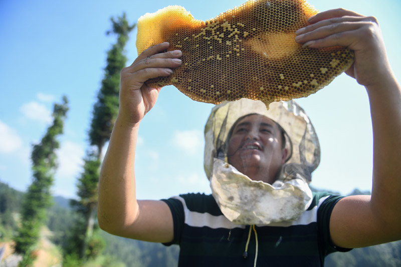 △十八洞村村民龙先兰学习养蜂技术,因地制宜发展养蜂产业,逐渐成为养蜂大户,还收获了甜蜜的爱情。