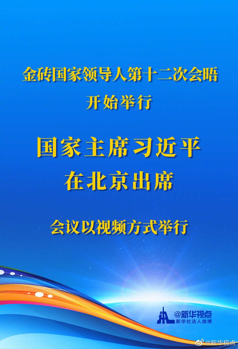 金砖国家领导人第十二次会晤开始举行,国家主席习近平在北京出席。会议以视频方式举行。