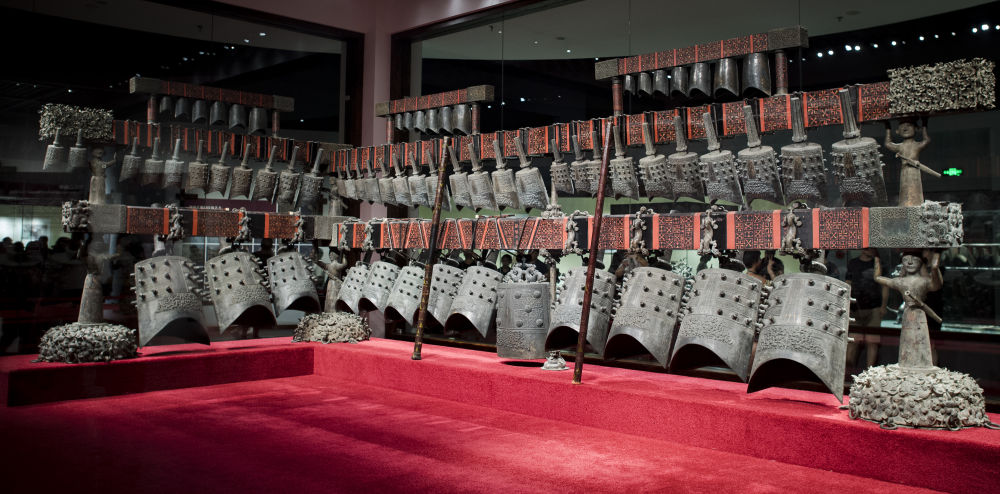 2018年8月17日,在湖北省博物馆拍摄的曾侯乙编钟。(新华社记者 肖艺九 摄)