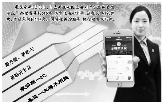 为适应移动互联网时代的诉讼需求,进一步规范“宁波移动微法院”的运用,3月26日,涵盖全部诉讼环节的《宁波移动微法院诉讼规程(试行)》在宁波法院实施,这也是全国首个移动电子诉讼规程。