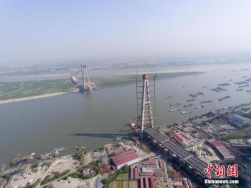 资料图:图为南岸主塔封顶后的青山长江大桥。中新社记者 邱建平 摄