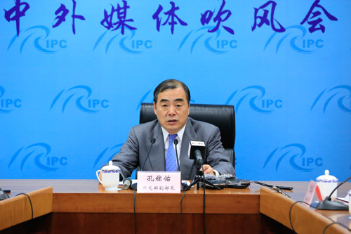 2018年4月24日,外交部副部长孔铉佑在外交部举行媒体吹风会,介绍中印领导人非正式会晤有关情况。