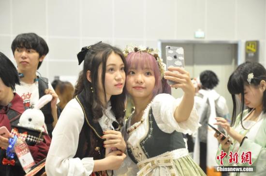 资料图:广西举办中国—东盟动漫游戏展上,精心装扮的动漫爱好者在现场玩起了自拍。钟建珊 摄