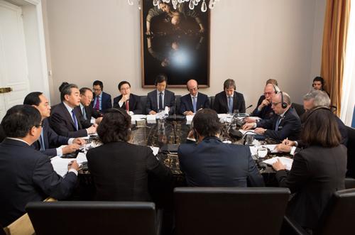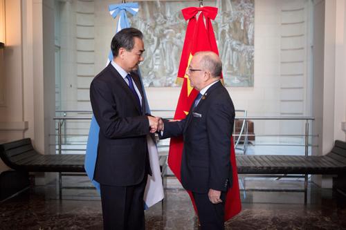 当地时间2018年5月20日,国务委员兼外交部长王毅在布宜诺斯艾利斯与阿根廷外长福列举行会谈。