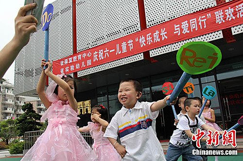 资料图:听障儿童庆六一。中新社发 卢丽宛 摄