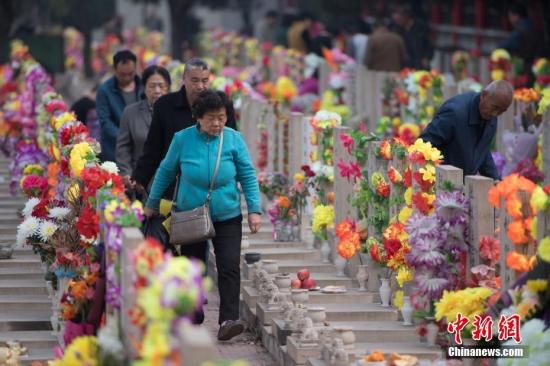 资料图 民众在墓园祭奠亲人。 韦亮 摄