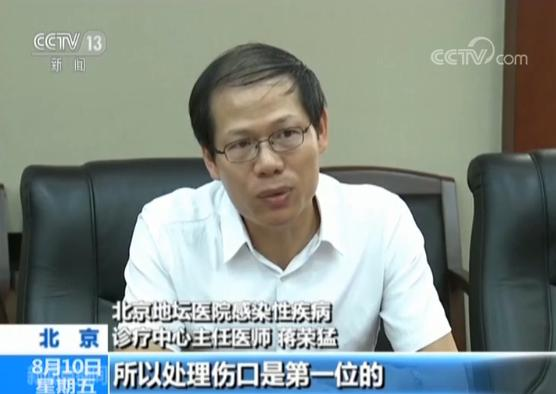 北京地坛医院感染性疾病诊疗中心主任医师 蒋荣猛:如果比较大的伤口的话,要立刻去医院进行处理。所以处理伤口是第一位的。我觉得这个很重要在哪,你不要说我非得要去医院再去处理,只要你有水,就一定要拿水尽可能去冲洗伤口,这是最重要的。然后再去医院,去医院以后,医生会根据伤口的咬伤程度和暴露的洞,决定注射狂犬病疫苗和狂犬病免疫球蛋白,这样就能做到一个很好的保护。