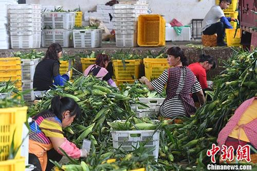 资料图:农产品公司员工正对玉米进行加工。中新社记者 任东 摄