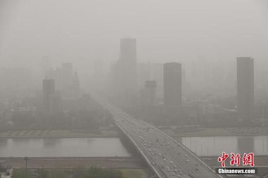 资料图:山西太原被沙尘笼罩,空气质量达到严重污染级别,户外能见度低。武俊杰 摄