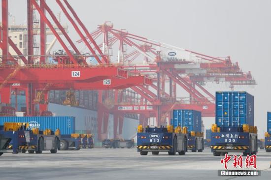 资料图:上海洋山港码头作业繁忙。中新社记者 张亨伟 摄