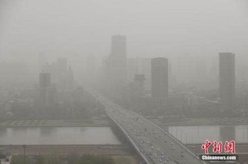 资料图:山西太原被沙尘笼罩,空气质量达到严重污染级别,户外能见度低。武俊杰 摄