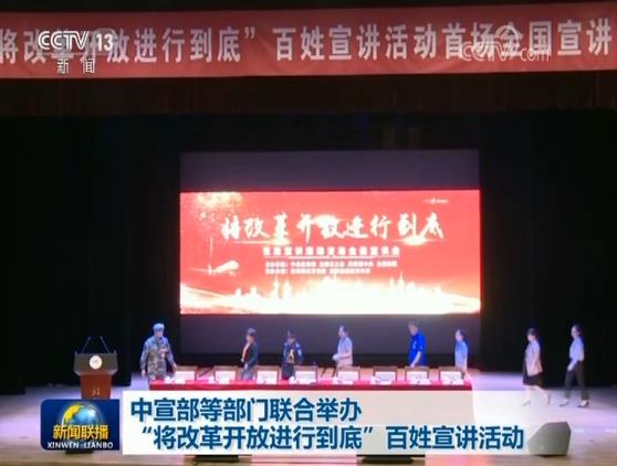 央视网消息(新闻联播):9月17日下午,中宣部、全国总工会、共青团中央、全国妇联在北京航空航天大学联合举办“将改革开放进行到底”百姓宣讲活动首场全国宣讲会。