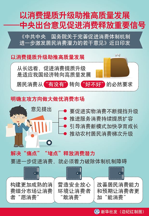 新华社北京9月21日电题:以消费提质升级助推高质量发展——中央出台意见促进消费释放重要信号