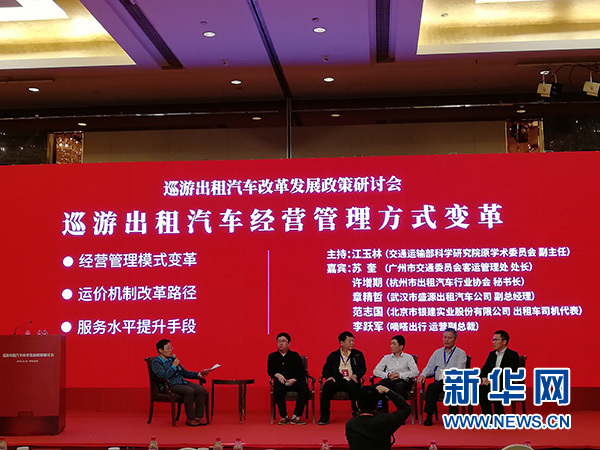 10月15日,以“融合互联网 推动巡游出租汽车网约化发展”为主题的巡游出租汽车改革发展政策研讨会在北京举行。图为研讨会现场。新华网发