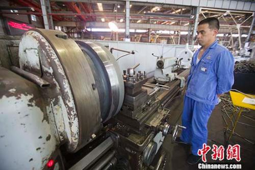 山西太重工人正在调试采煤机。(资料图片)中新社记者 张云 摄