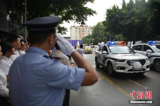资料图:8月6日上午,四川省眉山市仁寿县公安局富加派出所所长王涛、辅警廖弦,为保护人民群众生命财产安全与持枪、刀的犯罪分子殊死搏斗,身受重伤,经抢救无效因公殉职。中新社记者 张浪 摄