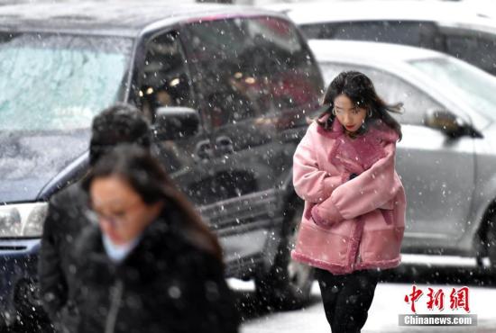 资料图:风雪中,民众裹紧衣领脚步匆匆。中新社记者 刘新 摄