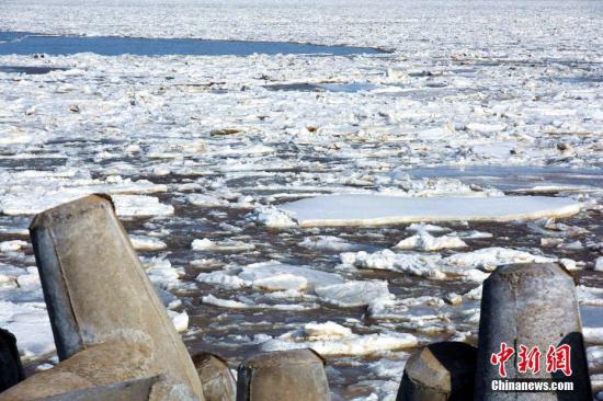资料图:渤海莱州湾的东营近海一片冰封,浮冰外缘线均在离岸3海里以上,最大至10海里。文/梁犇 陈镜旭 高源 图/陈镜旭