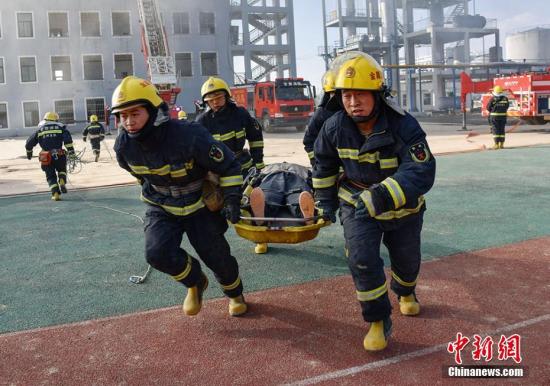 资料图:消防救援实战演练。师永红 摄