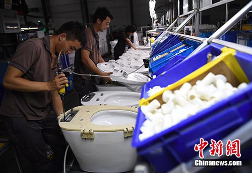 资料图:工人在福建省南安市九牧厨卫生产车间内作业。中新社记者 张斌 摄