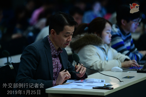 2019年1月25日外交部发言人华春莹主持例行记者会