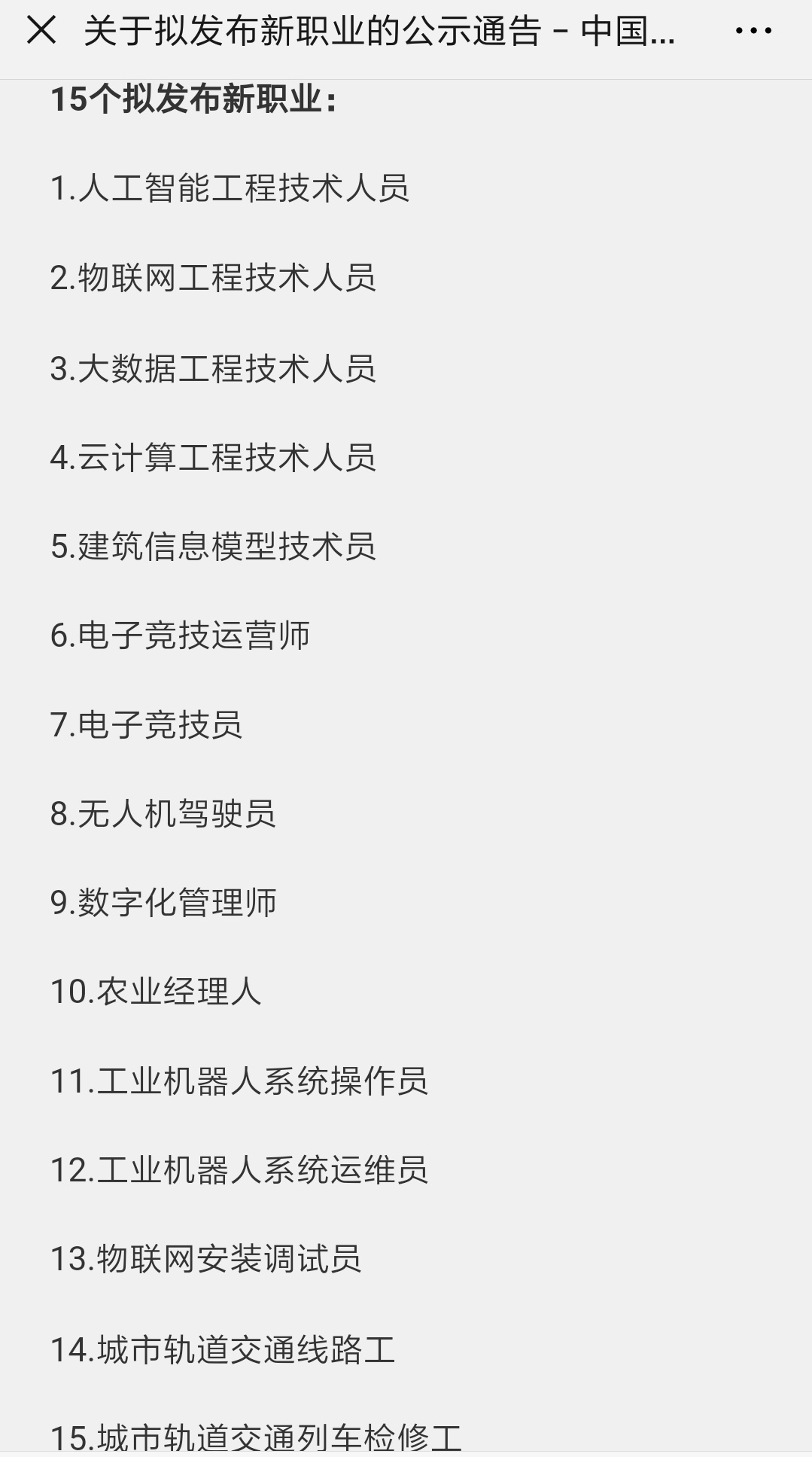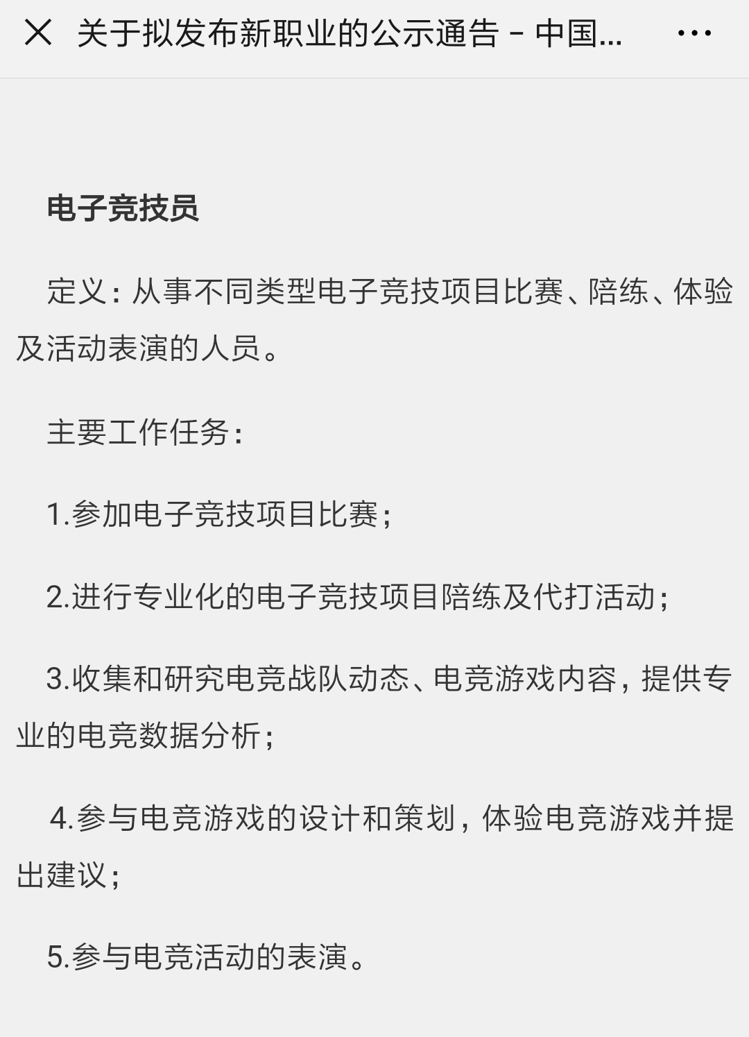 中新网客户端1月28日电 (李金磊)人社部近日发布公示通告,拟发布15个新职业,包括人工智能、物联网、大数据、云计算的工程技术人员,电子竞技员、电子竞技运营师、无人机驾驶员等也入围。其中,电子竞技员的主要任务包括参加电子竞技项目比赛,进行专业化的电子竞技项目陪练及代打活动,等等。你想去从事哪个新职业?