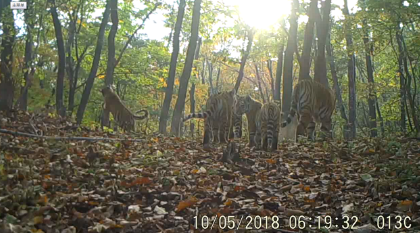 2018年,通过监测发现,多个野生东北虎繁殖家庭现身东北虎豹国家公园。5月26日,在吉林珲春监测拍摄到一只雌虎携带2只幼仔外出的画面。10月5日,在珲春监测到另一只雌虎携带4只幼仔在林中漫步,这是中国第三次监测到一虎带4仔的场景。东北虎繁殖家庭连续被发现,显示了中国东北虎种群繁殖力旺盛,东北虎豹国家公园内的东北虎种群迎来了一次比较集中的繁殖高峰期。