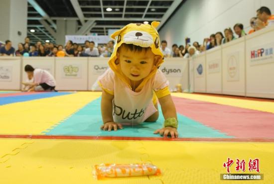 资料图:百名婴儿参加全港婴儿慈善马拉松爬行大赛。中新社记者 张炜 摄