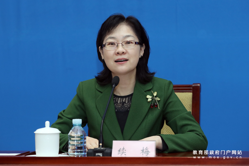 教育部新闻发言人续梅主持发布会。(中国教育报记者 张劲松 摄)