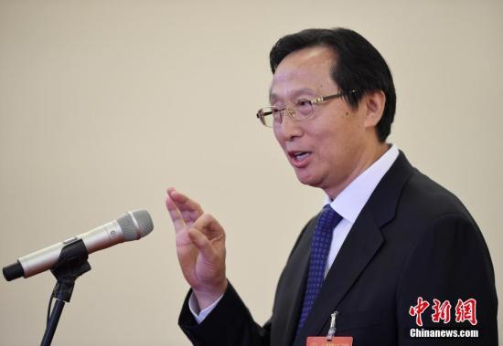 图为农业农村部部长韩长赋在“部长通道”接受采访。中新社记者 侯宇 摄