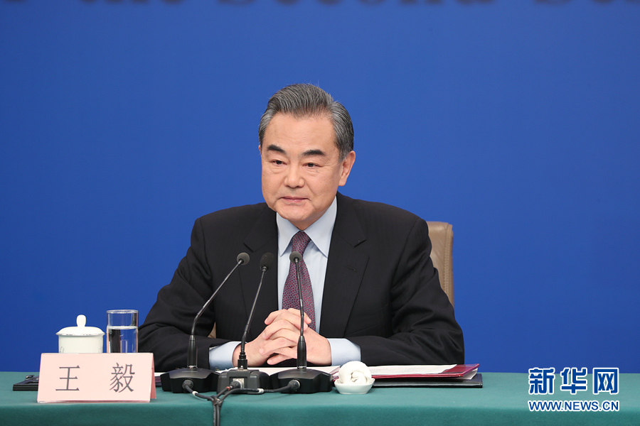 十三届全国人大二次会议新闻中心3月8日10时在梅地亚中心新闻发布厅举行记者会,邀请国务委员兼外交部长王毅就“中国外交政策和对外关系”相关问题回答中外记者提问。图为王毅回答记者提问。新华网/中国政府网 陈杰 摄