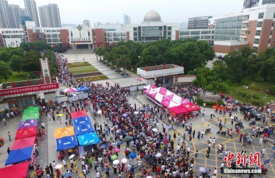 资料图:高考首场考试结束后,考生有序走出考场,形成的队伍犹如“长龙”。中新社记者 刘占昆 摄