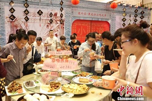 资料图:民众品尝各色小吃。中新社记者 于琨 摄