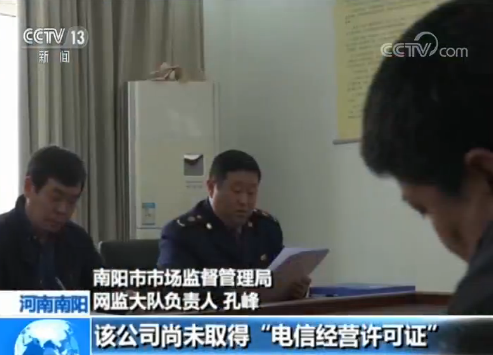 南阳市市场监督管理局网监大队负责人 孔峰:该公司尚未取得“电信经营许可证”。根据现场检查及后期询问,我局的初步意见是,该登记事项发生了变化,未向登记机关申请变更登记,其行为涉嫌违反了《公司登记管理条例》第二十六条,公司变更登记事项应向原公司登记机关申请变更登记,未经变更登记,公司不得擅自改变登记事项之规定。